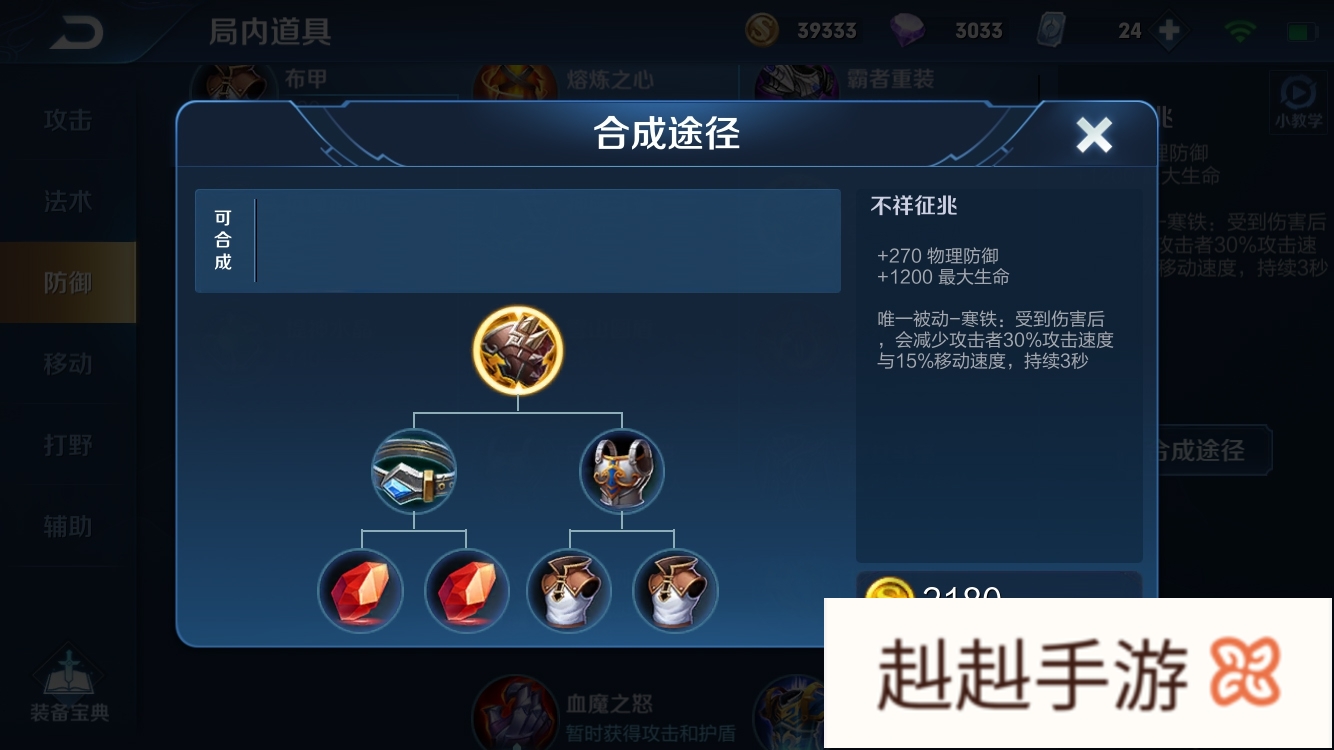 不详征兆的基础属性效果主要是提供物理防御的提升,最大生命值的加持。通过被动效果“寒铁”可以在承受到目标伤害的时,降低攻击者一定的攻速和一定速度度,这个效果将会持续3秒之久。