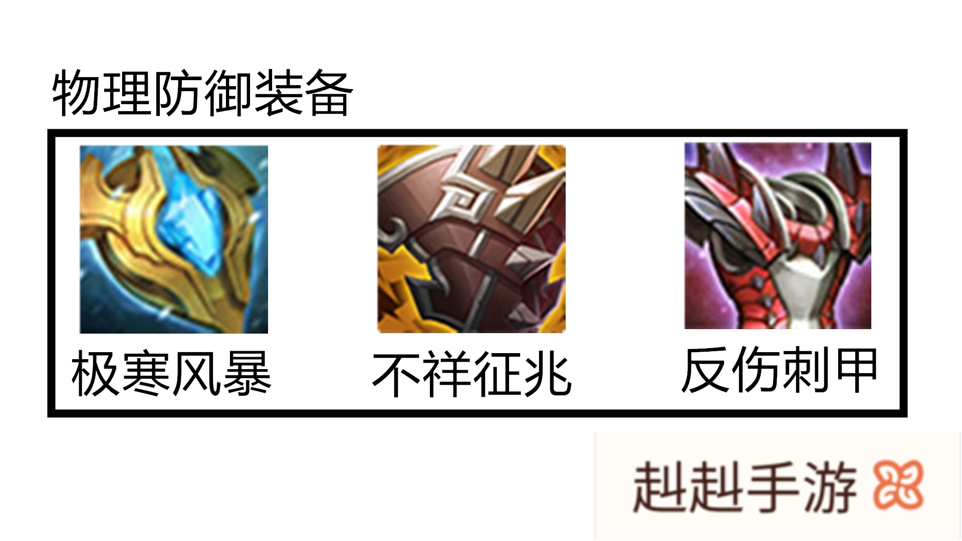 因此,在合适的对局选择合适的防御装备便能有效地扭转战局!在当前版本中,比较的热门的防御装备主要有极寒风暴、反甲(反伤刺甲)、不详征兆等!这三件都属于物理防御装,且都具备一定的反弹作用!