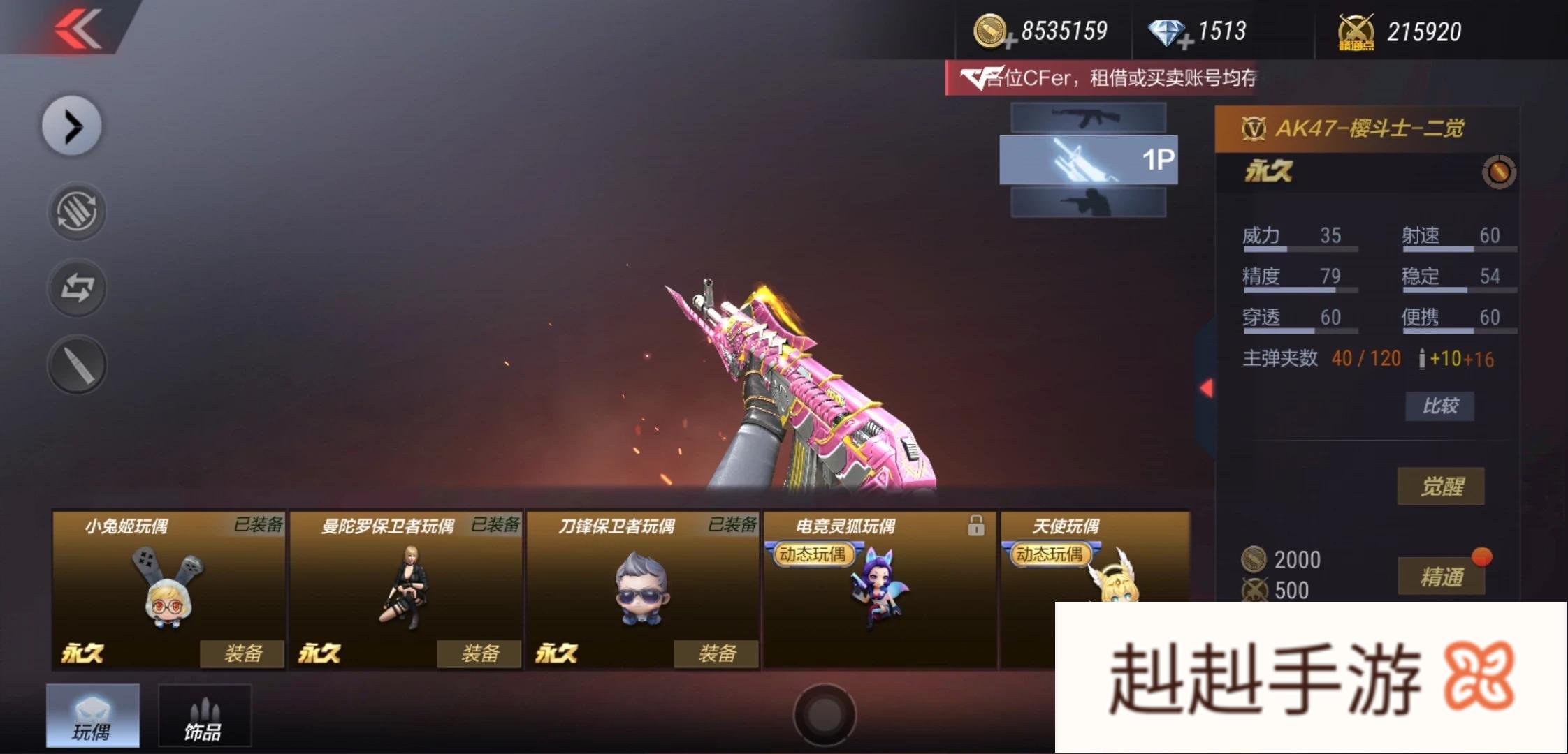 好用而且便宜,CF手游每期赏金令中,激活赏金令赠送的英雄级武器无疑是最送关注的,但一般在初级状态下属性比较一般,但这次的AK47-樱斗士可谓是不甘平凡。在初级模式下虽然属性一般,但觉醒的超觉状态后,那可是“秒天秒地”的存在,并且有望成为性价比最高的英雄级AK47!AK47-樱斗士-樱斗士是有角斗士改版而来,相比角斗士那仿佛来自于古典世界的腾腾杀气,樱斗士则更加温和,像一个被驯化的野兽,在你的手里是你的贴心宝贝,而遇到敌人则是霸气十足的绝圣斗士。樱斗士大面积使用了粉色,非常适合女孩子使用,但男生使用也不会有违和感,因为粉色的外表无法掩盖其粗狂的内心。AK47-樱斗士-一觉为樱斗士的最初级状态,除了粉色的开枪火焰以外,并没有其它光效,这也是可以理解的,毕竟厉害的都在后面。属性方面有着特殊近战攻击、专属枪火效果、专属消灭图标以及经验值加成;而基础性能方面,换弹速度为1.83秒,这有优点不够打了,所以是有很大的必要将其觉醒,发挥出樱斗士应有的潜能。AK47-樱斗士-二觉: